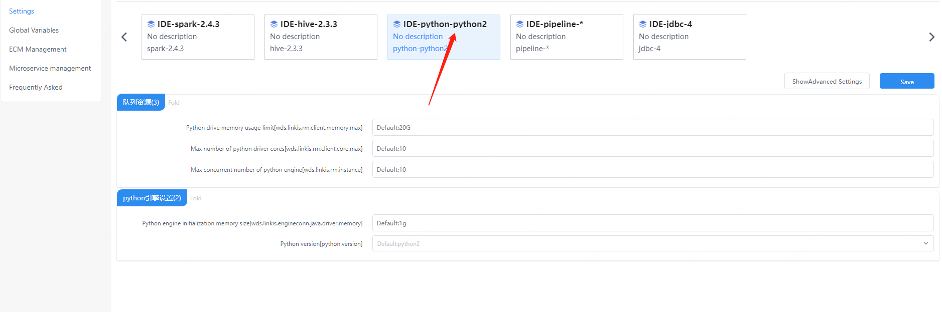 In addition to the above EngineConn configuration, users can also make custom settings, such as the version of python and some modules that python needs to load.