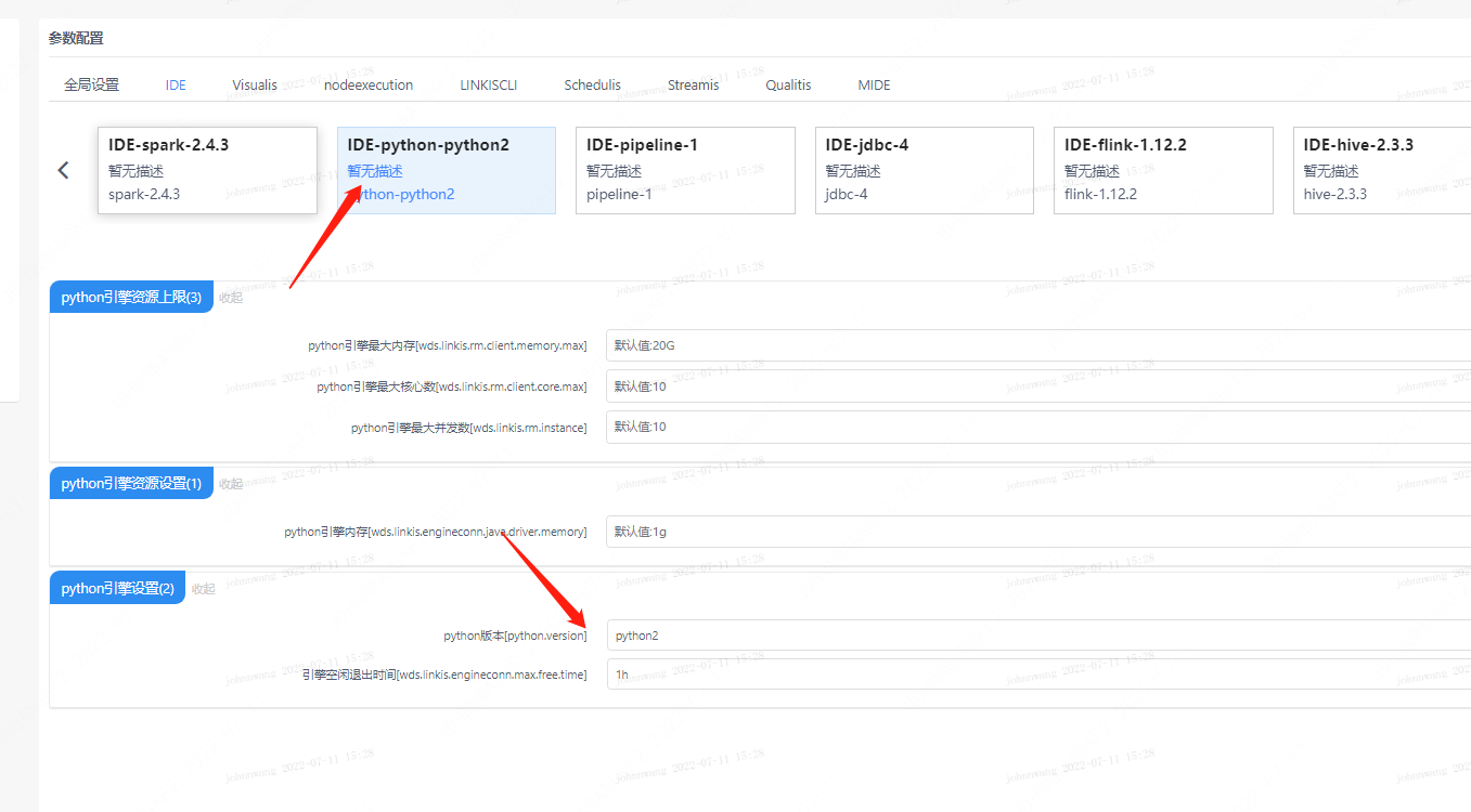 In addition to the above EngineConn configuration, users can also make custom settings, such as the version of python and some modules that python needs to load.