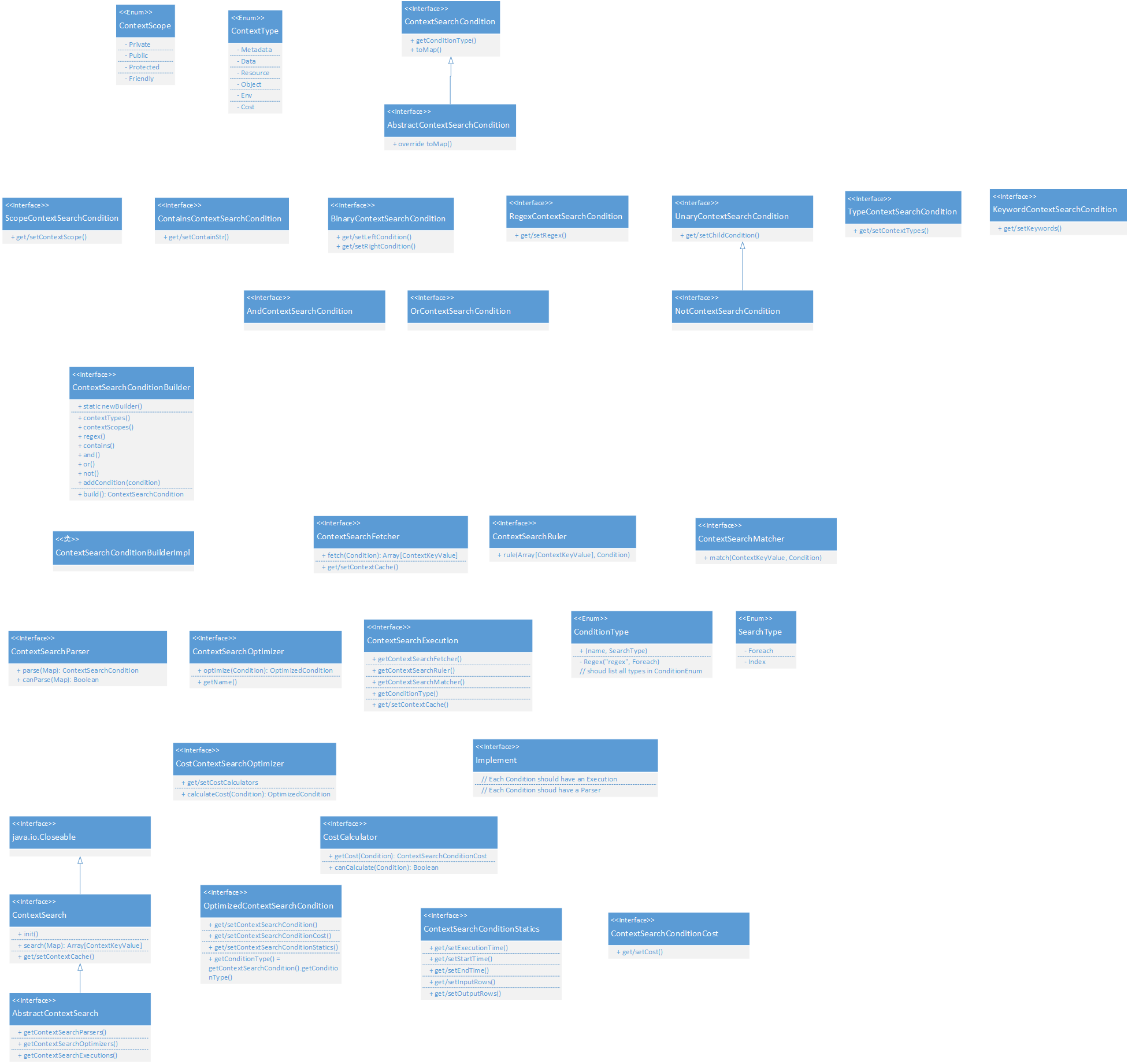 1. Support construction through ContextSearchConditionBuilder: When constructing, if multiple ContextType, ContextScope, KeyWord, contains/regex matches are declared at the same time, they will be automatically connected by And logical operation