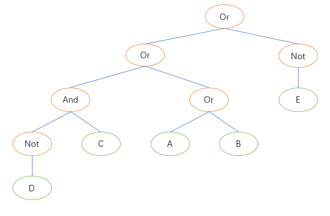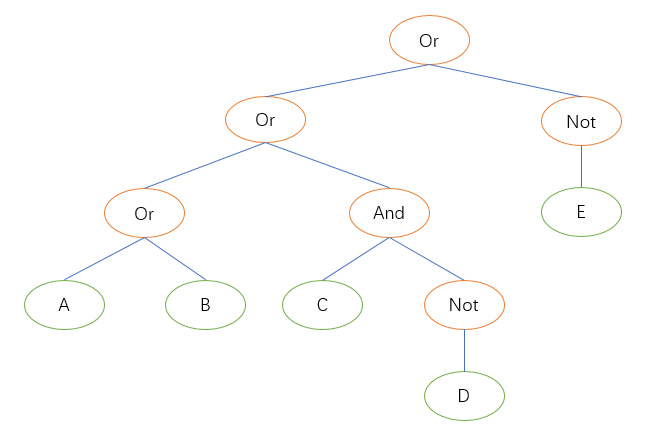 Tree A as shown in the figure below is a complex condition composed of five simple conditions of ABCDE through various logical operations.