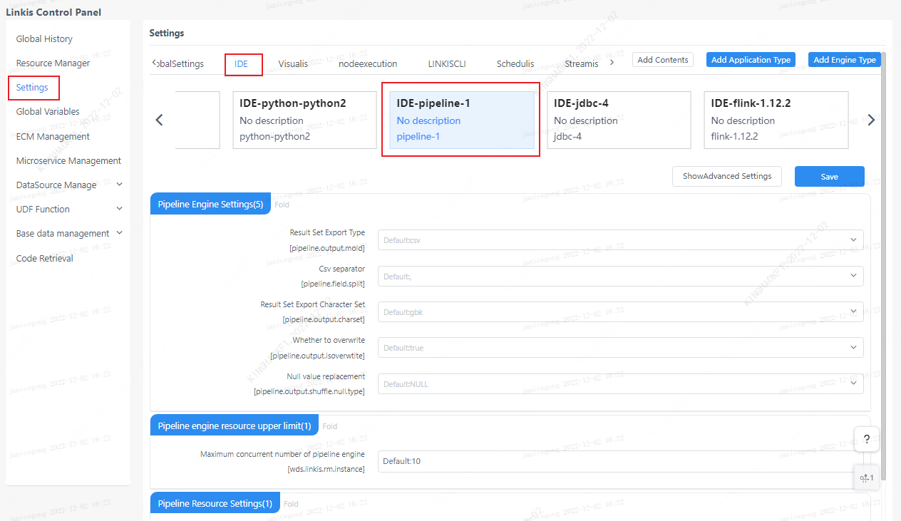 linkis_cg_manager_label: insert engine label such as: pipeline-1