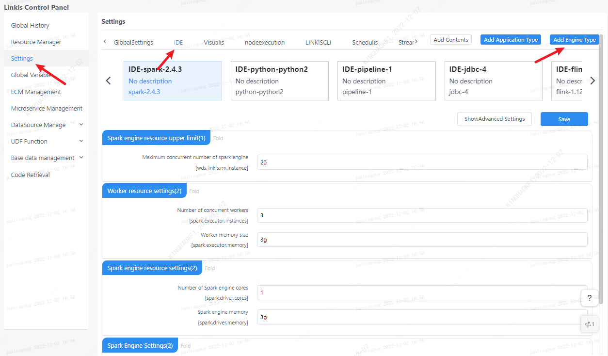 Note:Engine version needs to fill in Linkis supported engine version. Otherwise, an error will be reported when executing the Linkis task.