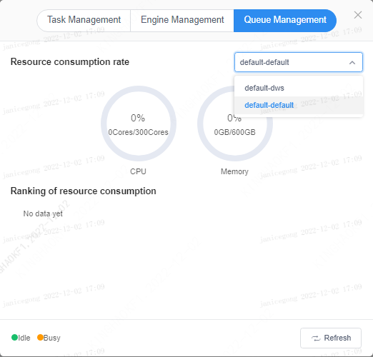 Click the button in the lower right corner to view the available resources of the queue.