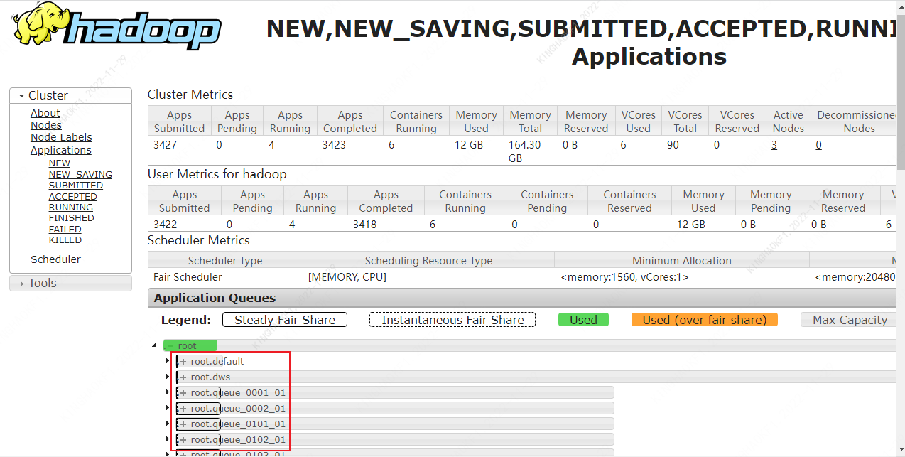 Visit hadoop cluster to view available queues, address: http://ip:port/cluster/scheduler