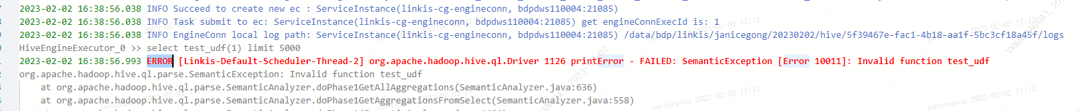 • 检查引擎是否已加载UDF,如果未加载,请重新另起一个引擎或者重启当前引擎 备注:只有当引擎初始化时,才会加载UDF,中途新增UDF,当前引擎将无法感知并且无法进行加载