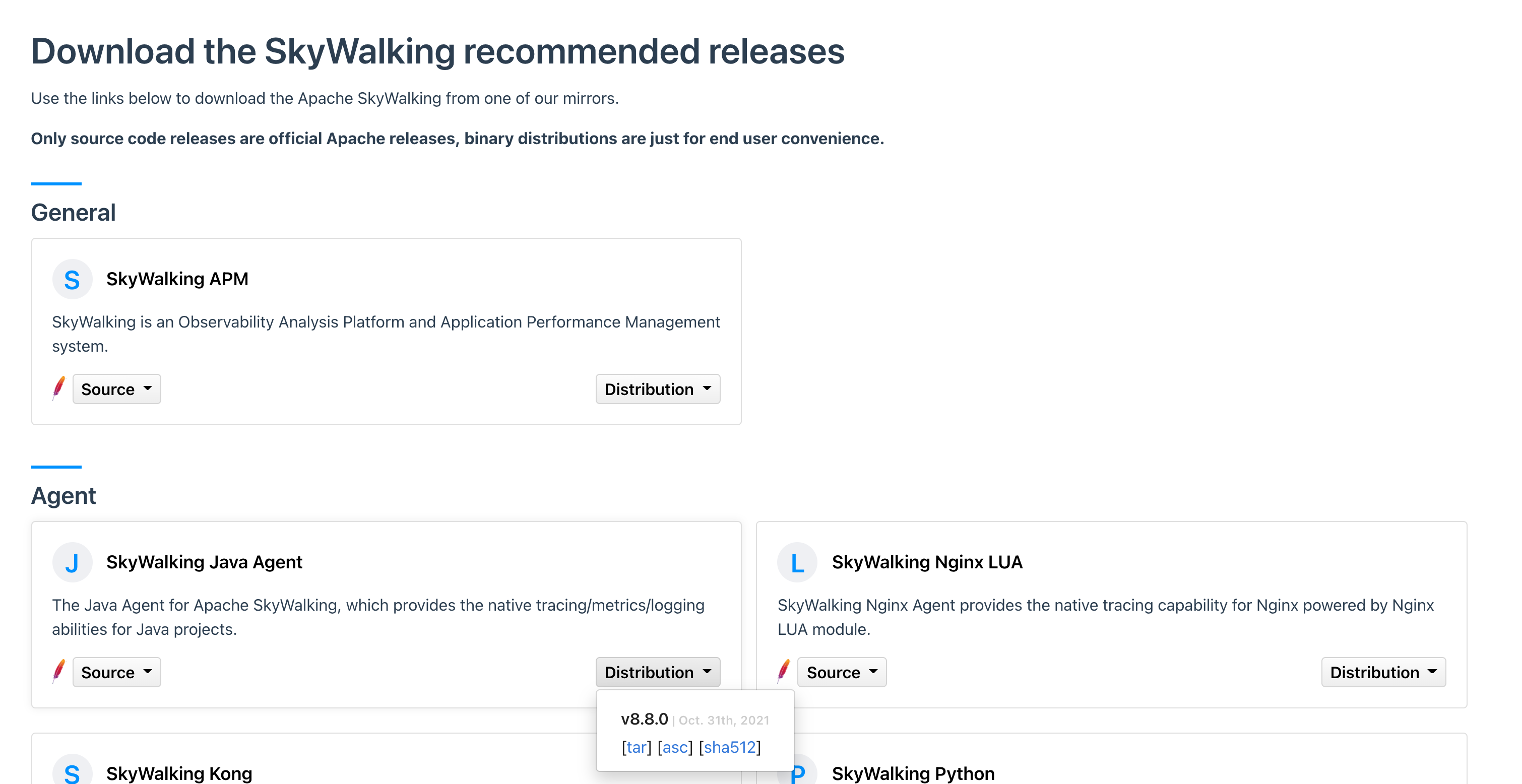 首先从 SkyWalking 的 Downloads 页面下载 SkyWalking APM。