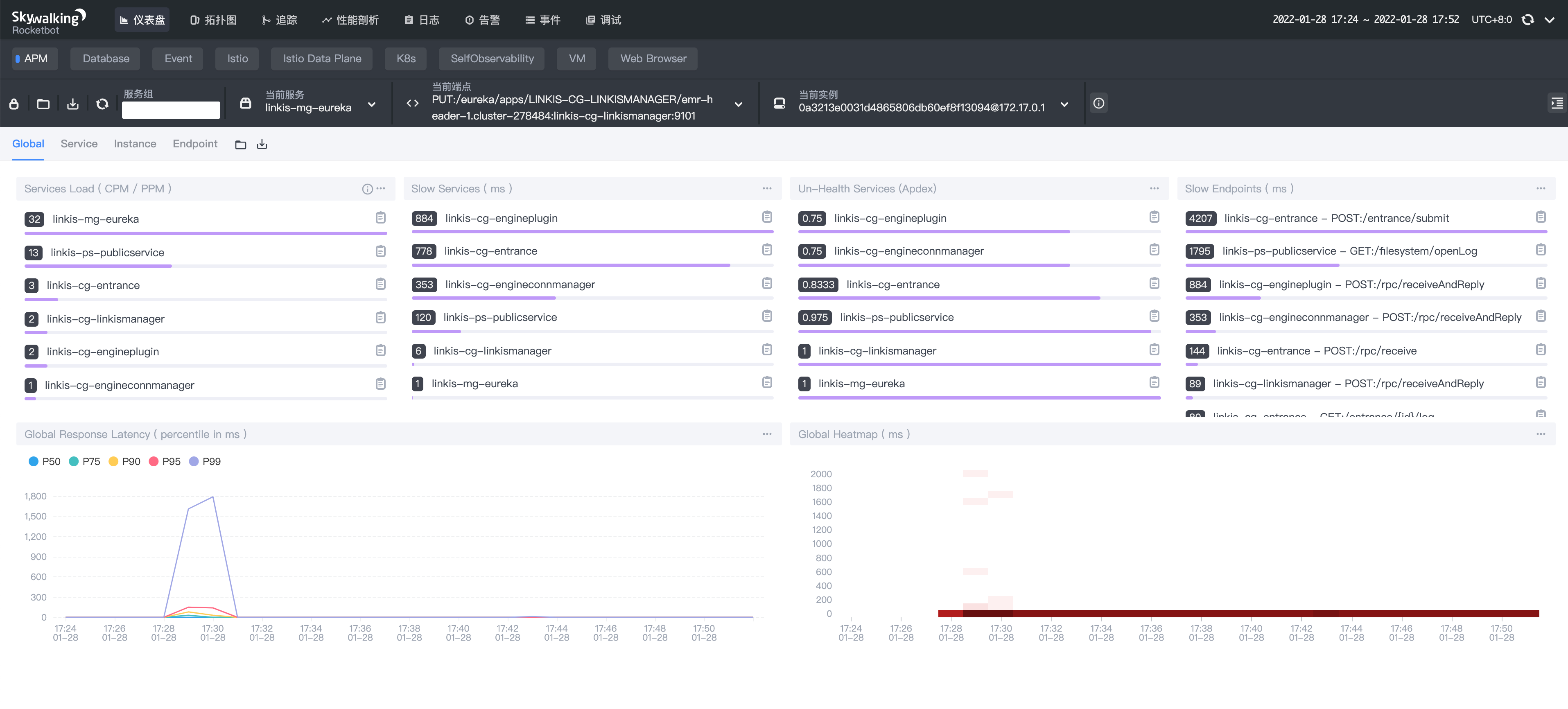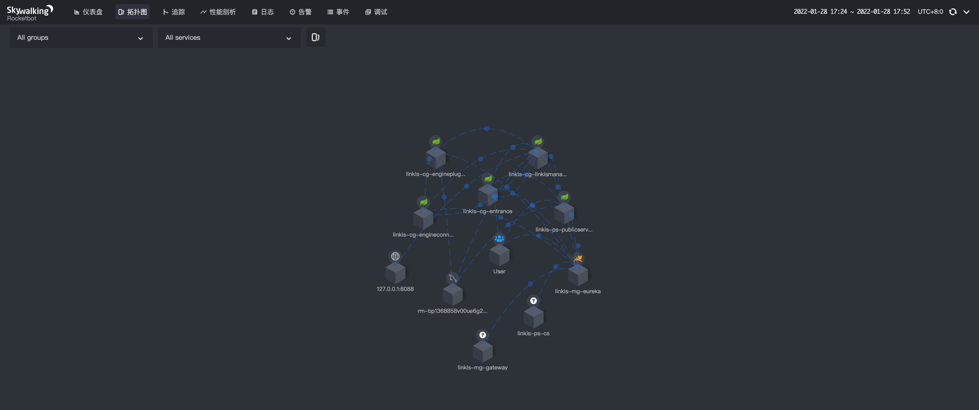 Linkis 的 UI 端口默认启动在 8080 端口,Linkis 开启 SkyWalking 之后打开 UI 如果能看到如下的图就表示成功了。