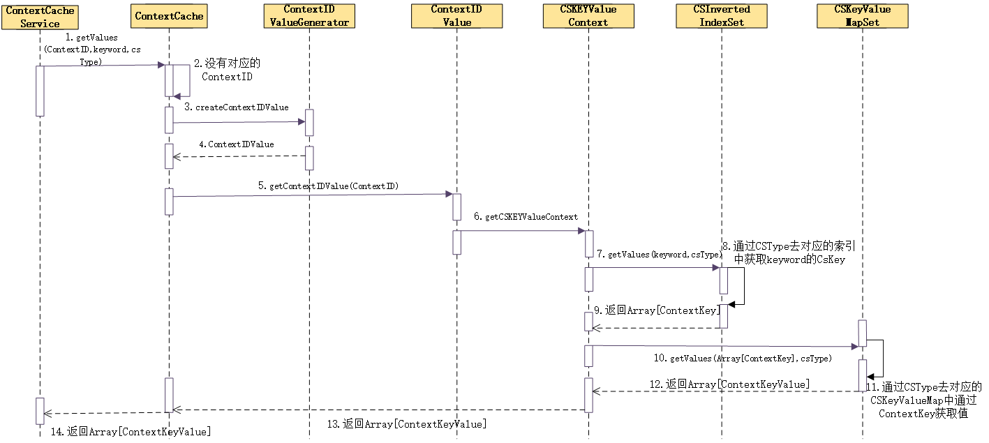下面的图绘制了以ContextID、KeyWord、ContextType去ContextCache中查对应的ContextKeyValue的整体流程。