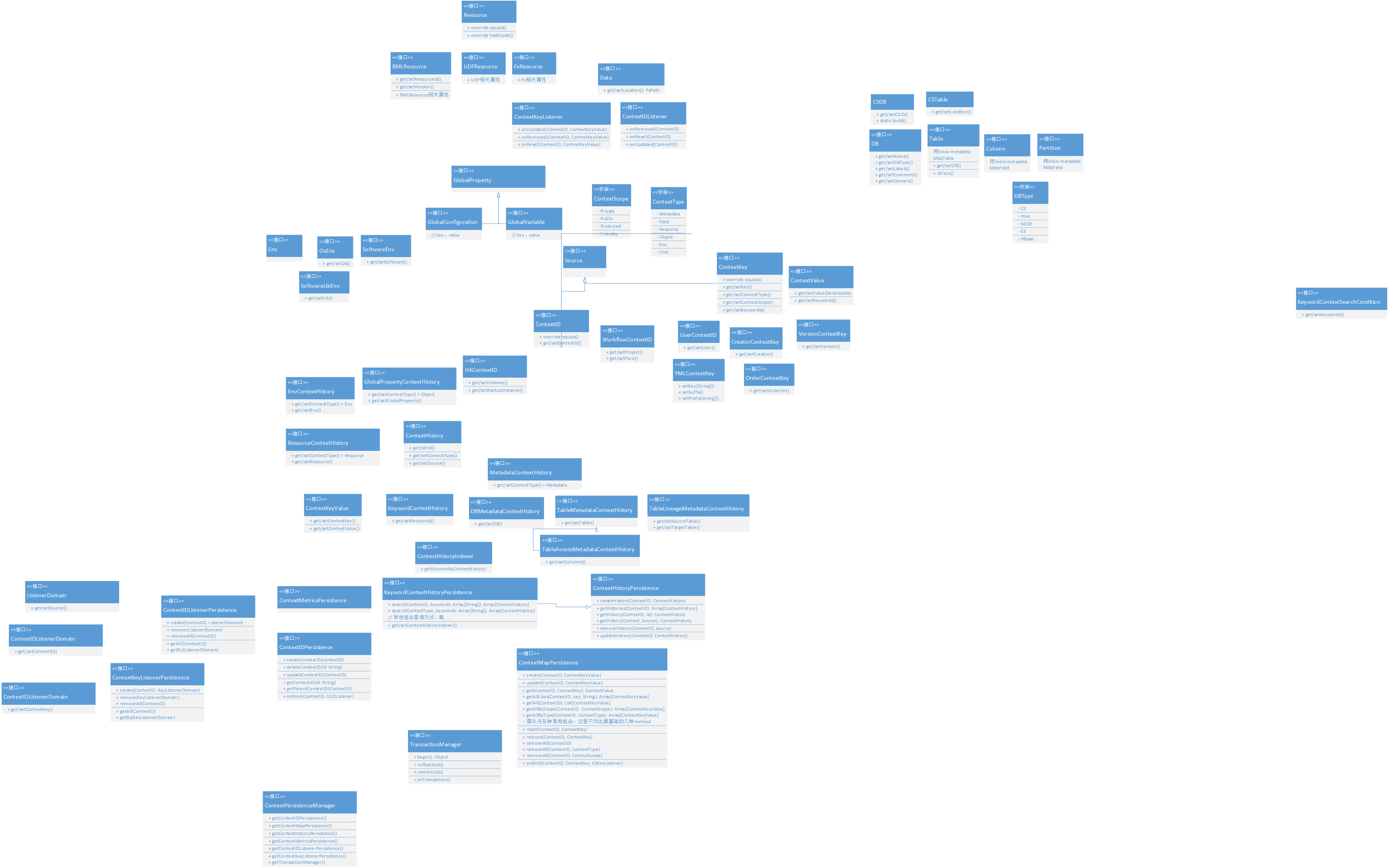 Persistence模块主要定义了ContextService持久化相关操作。实体主要包含CSID、ContextKeyValue相关、CSResource相关、CSTable相关。