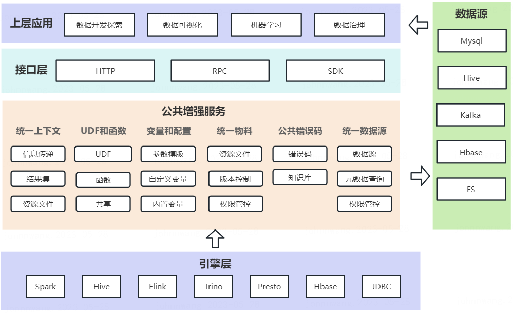 • 提供统一配置和变量的能力:提供了统一的配置能力支持模板化的配置不同的引擎参数模版,支持自定义变量、内置常用的系统变量和时间格式变量等。